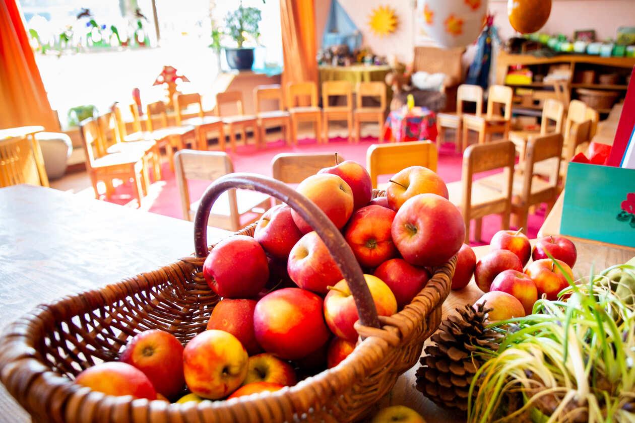 Ondertussen zingen wij van de molen, de wind, the appletree, de eekhoorn en alle blaadjes klein en groot die worden geel en rood.